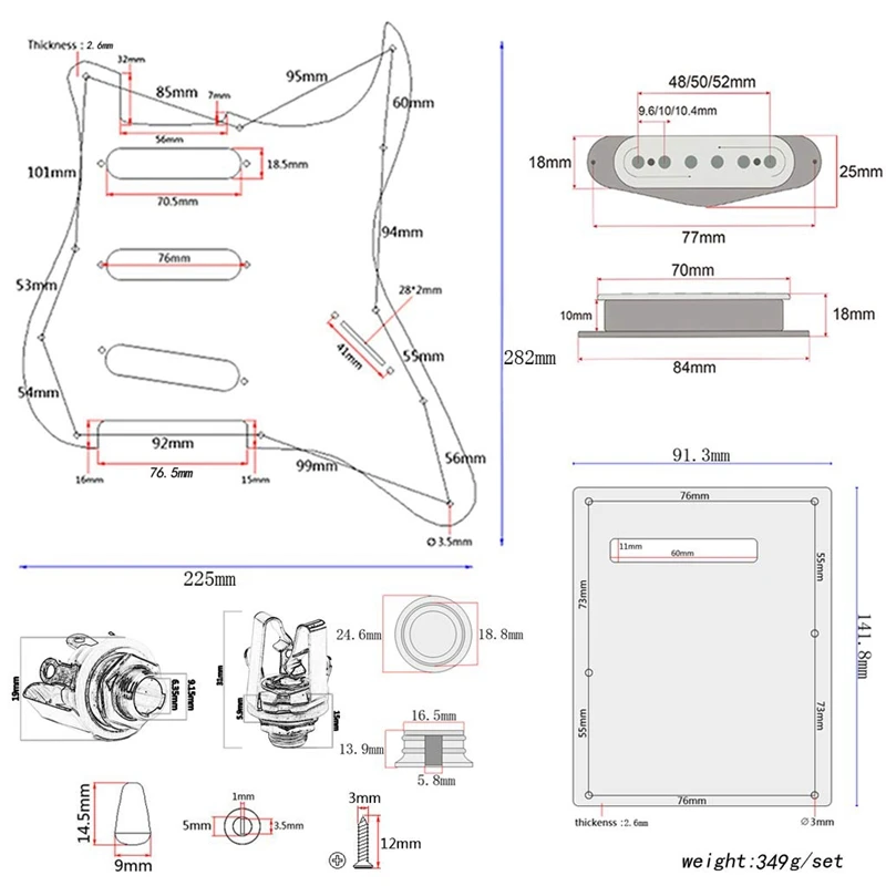 Pickguard:11 screw holes,SSS style.Maple wood Pickguard loaded Alnico V Pickups fit for Strat Electric Guitar.
