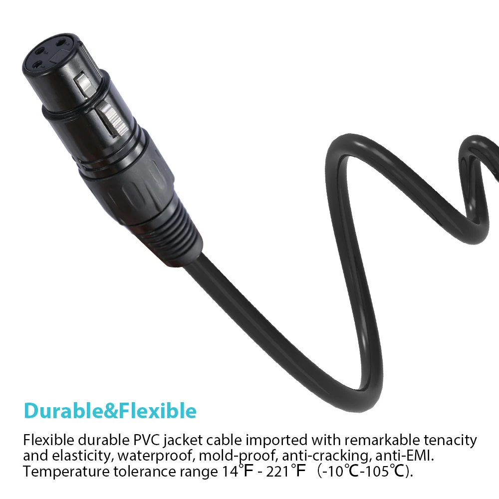 3-pin XLR male to female connection, zinc alloy plugs, durable and anti-corrosion, easy plugging and unplugging.