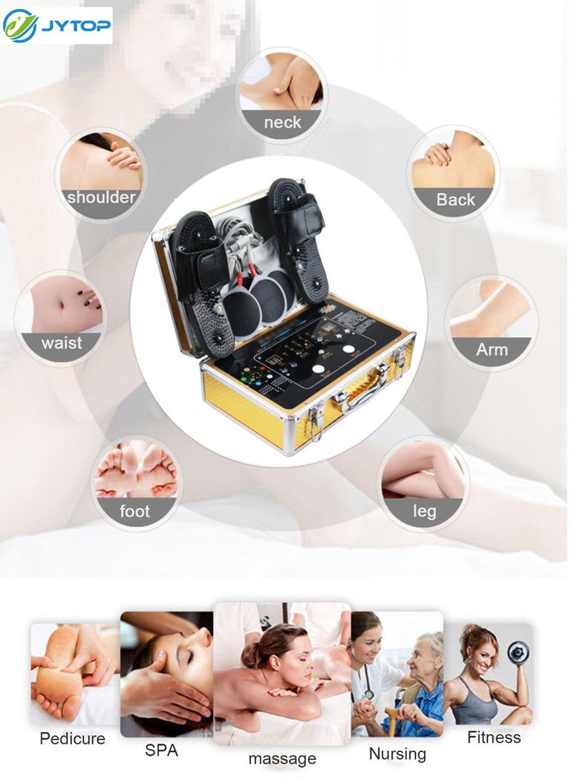 2 режима работы 1. Выход инструмента 1 и выход инструмента 2 соответственно вставляются в выходной порт устройства, а другой конец подключается D на электродный патч. Выход 1 и выход 2 должны работать одновременно. Выход 1 может использоваться на подошве и выводить 2 на пациента. Вы можете напрямую Массируйте пациента через проводимость. Когда вы работаете, вы должны выводить 1 и выводить 2 одновременно. 2 Режима работы 2. Выход массажера 1 и выход 2, соответственно вставляется в один конец выходной линии, другой конец подключен к патч или Тапочки (перчатки, носки и т. Д.) Выход 1 и выход 2 должны быть потеряны одновременно, носить тапочки на босых ногах, и еще одна пара пластырей, размещенных на custo Мер, массируйте пальцами Если вы сделаете это самостоятельно, наденьте обувь для электротерапии босиком, а остальные два патча можно разместить в любом месте вашего тела. Инструкции по использованию: 1. Розетка находится в задней части коробки, подключите шнур питания, включите переключатель 2. Найдите выходную линию, один конец вставляется в выходной интерфейс массажера, а другой конец подключен к электроду patc H. 3. На приборе 10 различных режимов, 9 из которых являются фиксированным режимом, а другой-автоматическим режимом цикла. 4. Выберите метод работы Применение ее самостоятельно:Прикрепите 4 электродные накладки непосредственно к детали, которую вам нужно обработать, чтобы вы могли использовать их плавно. Для покупателей:Используйте один канал (выход 1 или выход 2) и другой канал для клиента. Массаж тела для клиентов thr Через палец контакт Посылка: 1 * DDS массажер 2 * Электротерапия линии 4 * электродный патч 1 * тапочки для электротерапии (двойные) 1 * перчатки для электрической терапии (двойные) 1 * носки для электрической терапии (двойные) 1 * паста для груди (двойная)