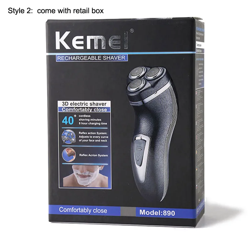 Детали товара:Бренд: KEMEIРежим питания: перезаряжаемыйГоловка бритвы: 3D плавающая головкаМетод очистки: не моетсяМодель: KM-890Время зарядки бритвы: 8-12 часовВремя использования: около 40-45 минутМощность: 2 ВтСтиль вилки: штепсельная вилка европейского стандартаЧастота напряжения: 220 ВАксессуары: крышка головки, чистящая щетка, руководство, карта послепродажного обслуживания, зарядное устройство переменного тока