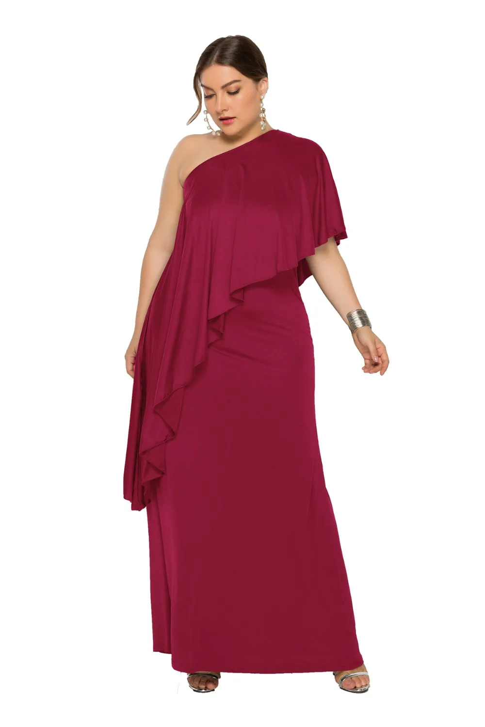 Женское летнее платье больших размеров с одним плечом и коротким рукавом, однотонное Свободное длинное платье со складками, модель FP3007, 2019