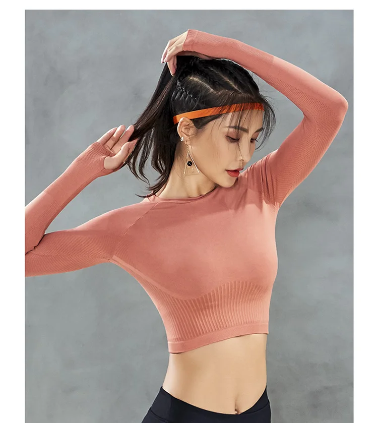 Однотонная бесшовная рубашка для йоги женский укороченный топ с коротким