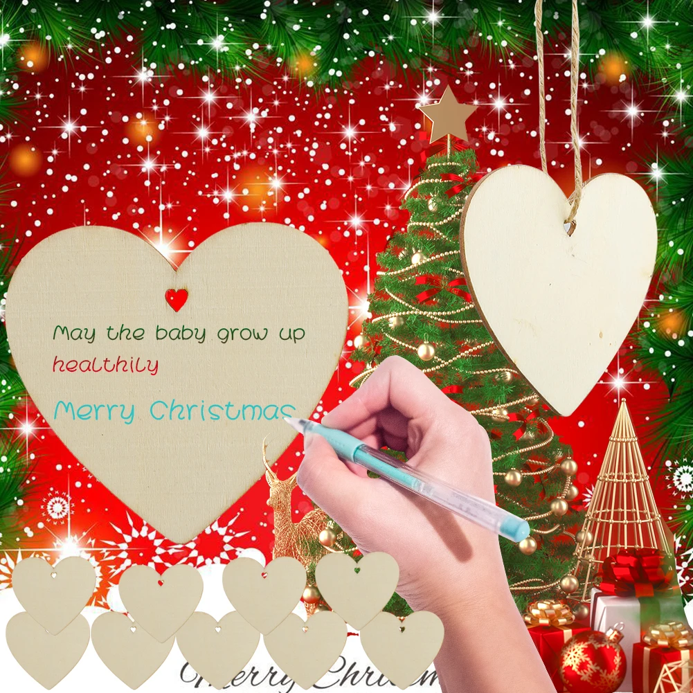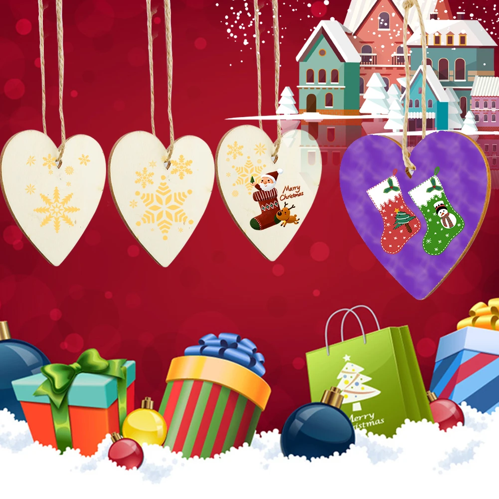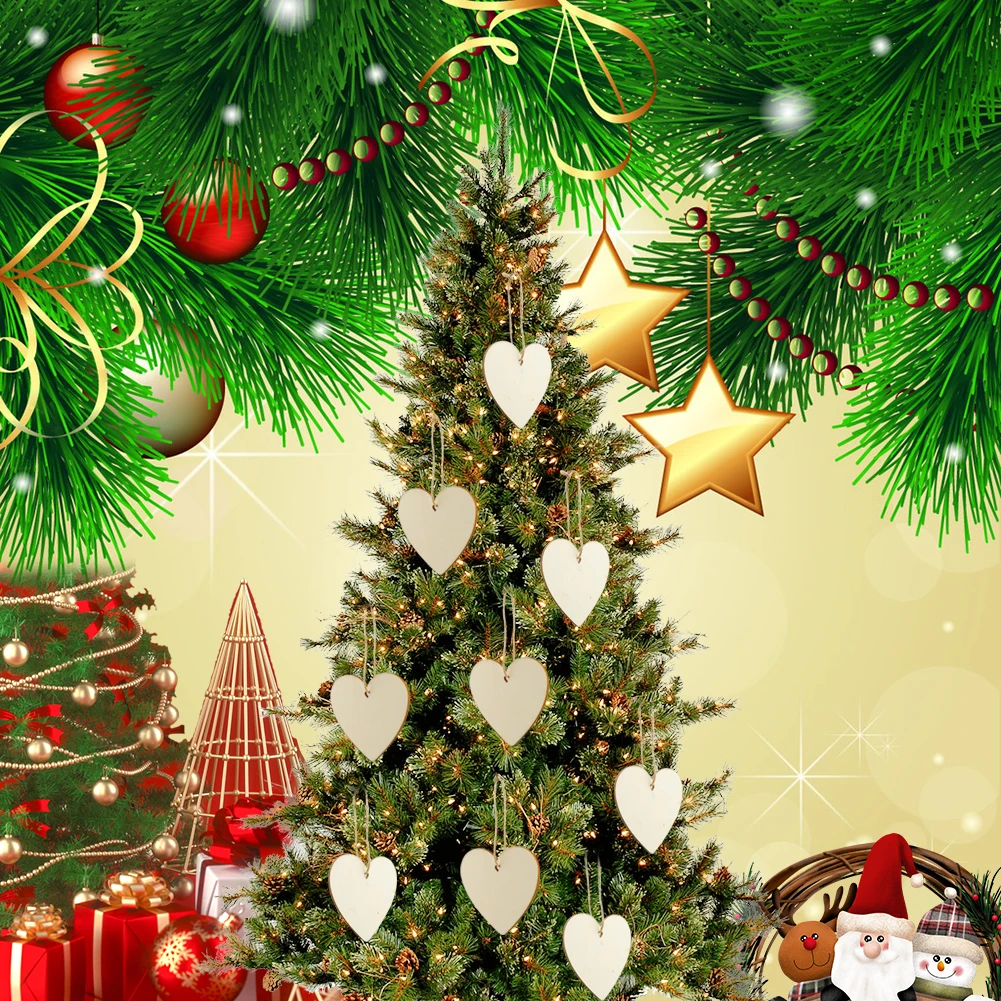 10pcs Wooden-Christmas-Tree-Ornaments Unfinished Ornaments Hanging Embellishments Crafts for Home Party DIY Hanging Decoration