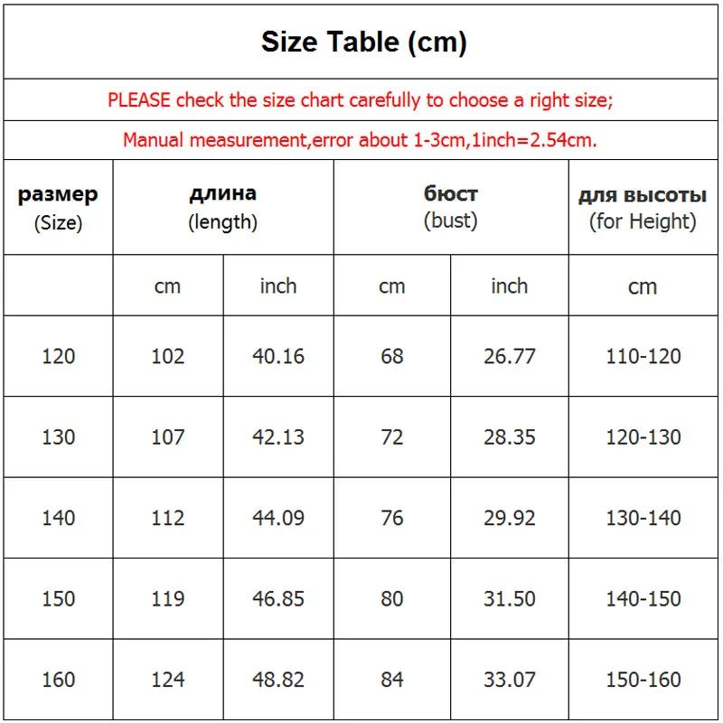Пожалуйста, внимательно сверьтесь с таблицей размеров, чтобы выбрать правильный размер;