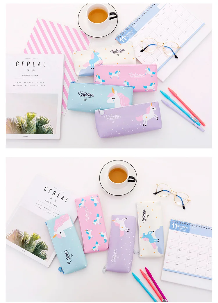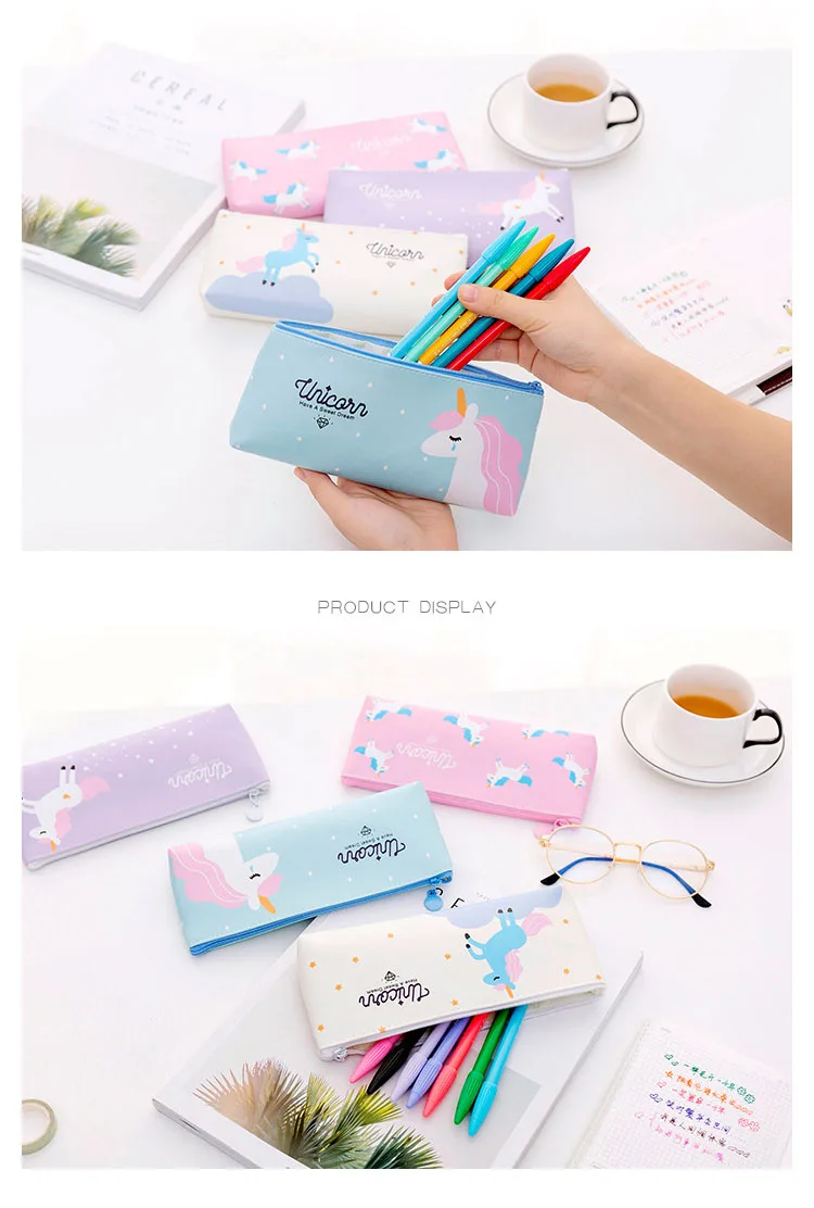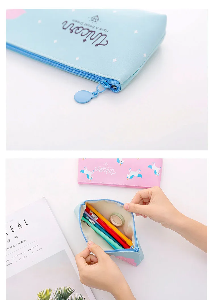 Cute Unicorn Pen Case School Girl Pencil Case PU Leather Pen Pouch for Students Kids Supply