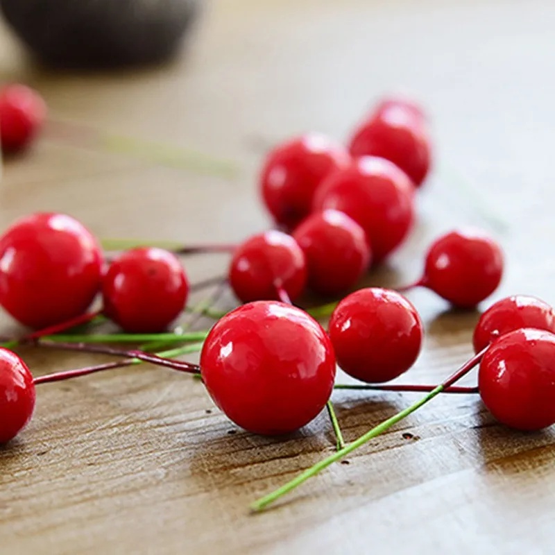 Искусственные Плоды ягод 1,2 см, искусственные стебли растений для рождественской елки, венка, «сделай сам», Рождественская гирлянда, украшение 50 шт./лот