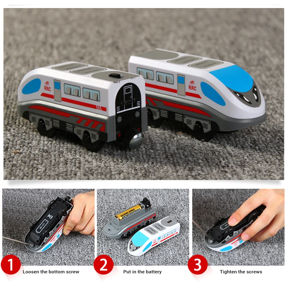 Простота в эксплуатации: вставьте одну батарею AA в нижнюю часть локомотива и подключите ее к двум другим рамам.