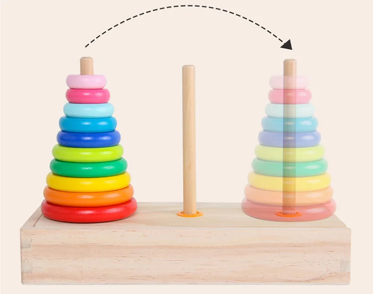 Классические деревянные головоломки стек башни ханоя ребенка математические раннего образования игрушки родитель-ребенок Взаимодействие игрушка с коробкой для хранения