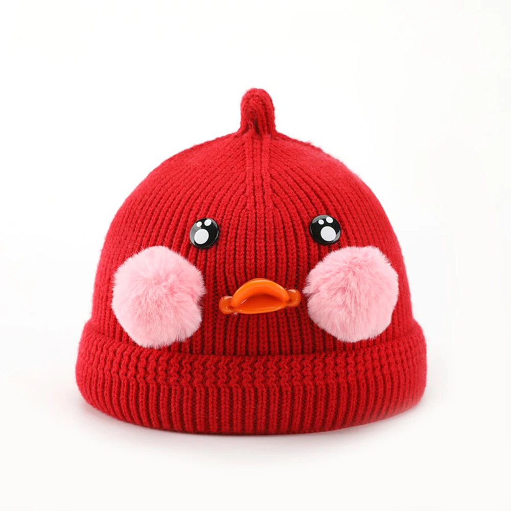 Новинка; Детская шапка; Шапка с милым желтым утенком; Теплые осенне-зимние сапоги на открытом воздухе вязаная шапка ветронепроницаемые От 2 до 6 лет, детская теплая плотная хлопчатобумажная внутренняя отделка; Для девочек и мальчиков 30