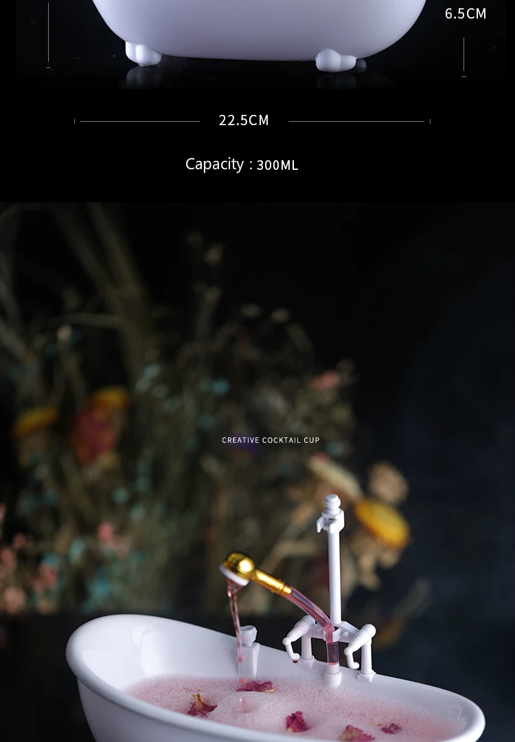 300ml White Bathtub Creative Cocktail Drink Cup Milkshake Beer Cold Drink Personality Spray Water Container Bar Club Decorations