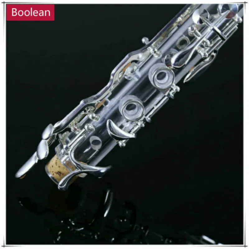 Логический акриловый прозрачный корпус с серебряным покрытием 18 ключей 4 кольца G тон кларнет