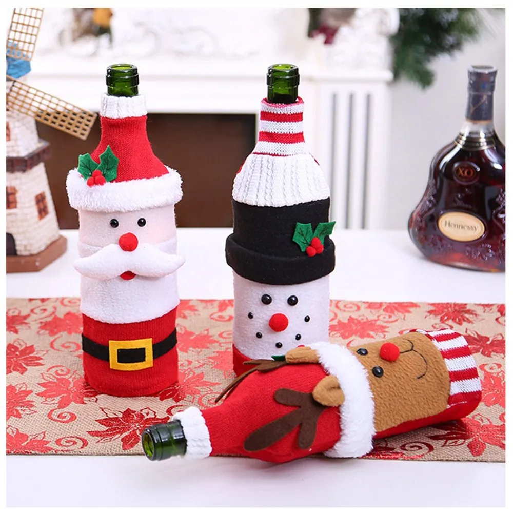 Рождественское красное вино бутылка Набор Винных напитков бутылка шляпа шапки Мини Посуда для напитков спирт для напитков крышка одежда для кухни украшение