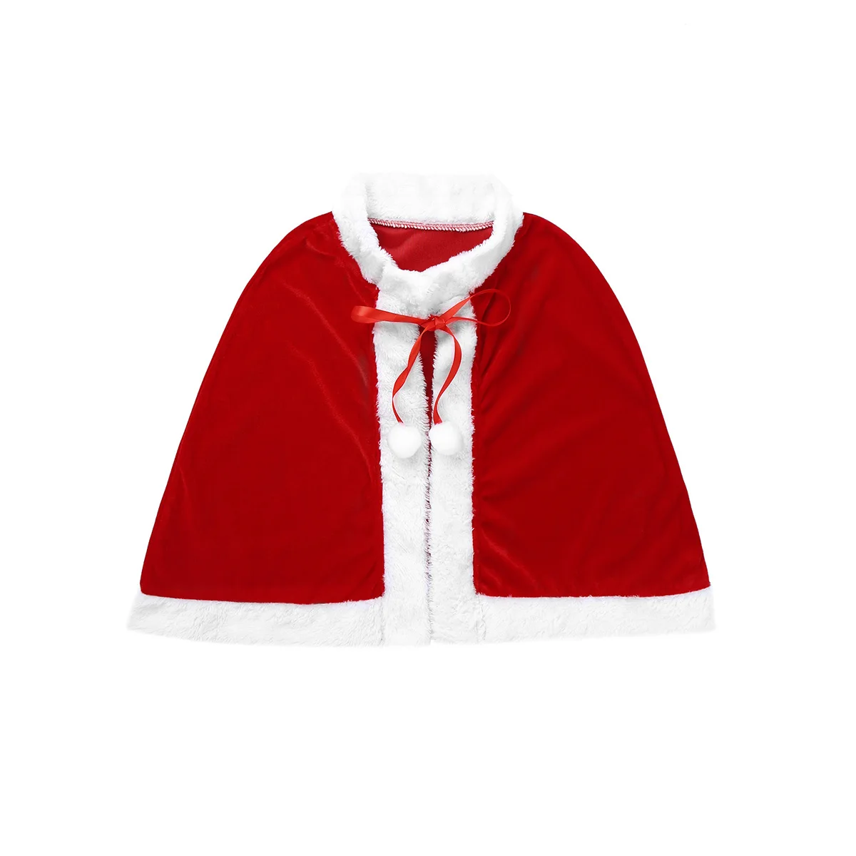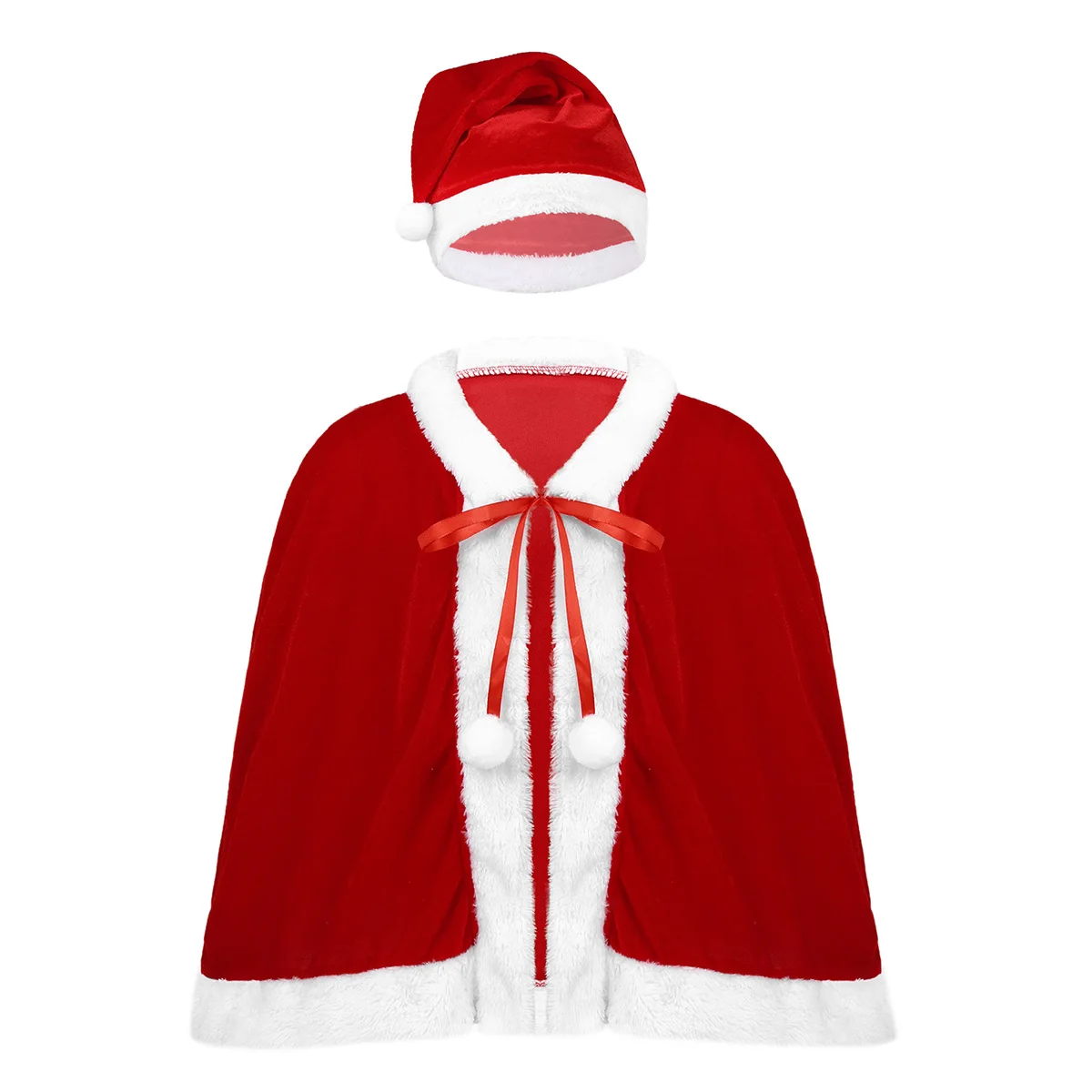 Рождественский костюм, плащ Санты, красный короткий плащ, шаль с рождественской шляпой.
