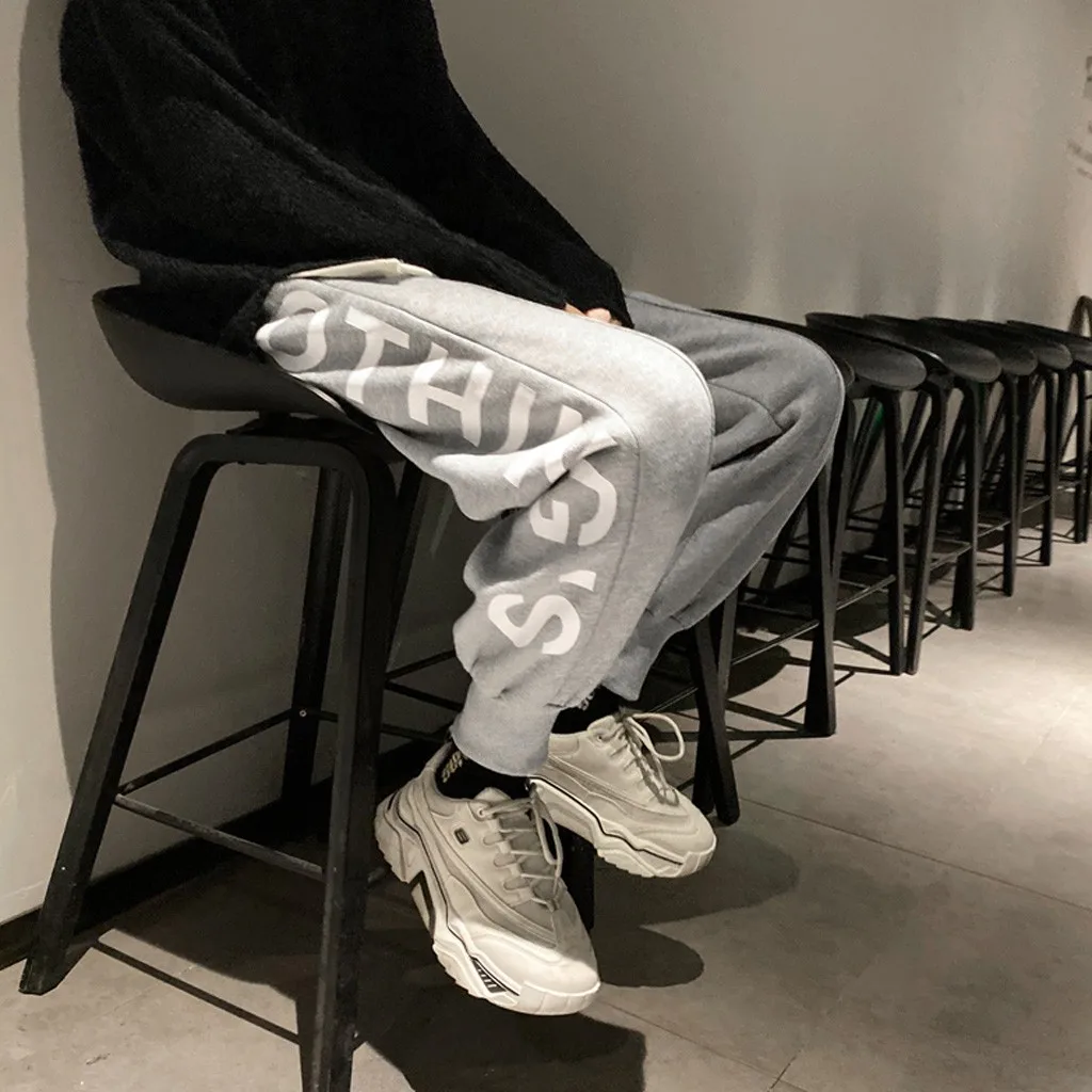 Мужские спортивные штаны, модные, с буквенным принтом, спортивные, до щиколотки, плисовые, утепленные, длинные штаны с эластичной резинкой на талии, свободные брюки, уличная одежда
