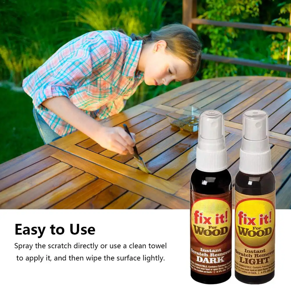 Этот продукт-жидкий воск. Пожалуйста, отремонтируйте поцарапанную часть вощеной мебели или деревянного пола, распылите ее на детали для ремонта, подождите около 3-10 минут, затем протрите его назад и вперед тканью из волокна, протрите его в течение одной минуты, затем снова протрите. (Примечание: Этот продукт подходит только для ремонта воскового слоя на поверхности доски, остальное не применимо)