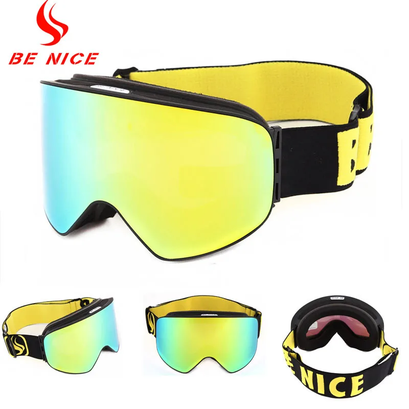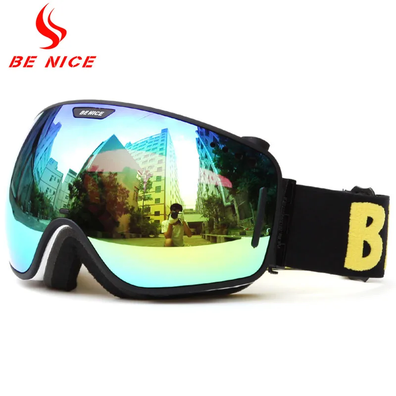 Benice Uv400 противотуманные лыжные очки двухслойные взрослые лыжные очки линзы для сноуборда очки для мужчин женщин мужчин сноуборд очкиUS $24,96 /