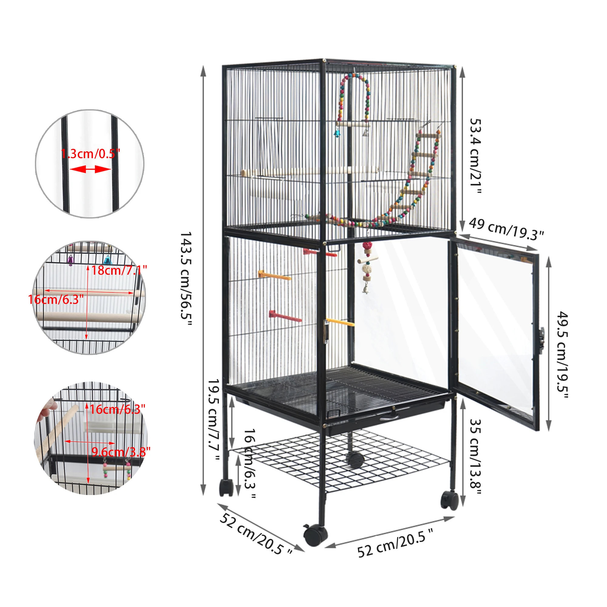 Широкий и большой размер: Габаритные размеры: 47,5*48*152 см/18,7*18,9 * 59.8in. Это обеспечивает просторная и Безопасная зона для ваших птиц, чтобы играть и отдыхать.