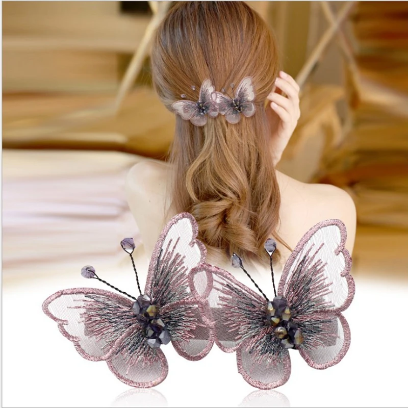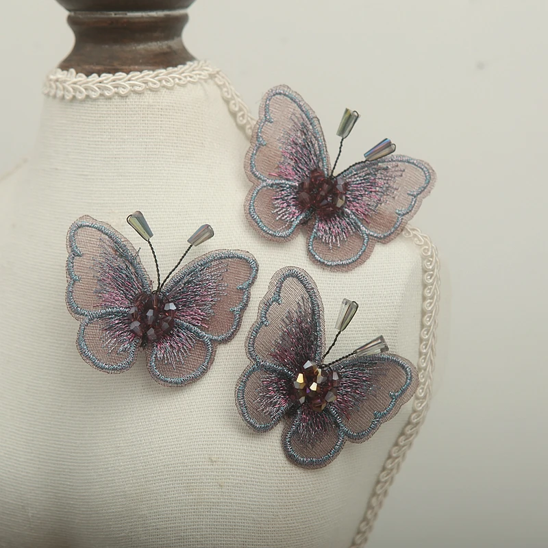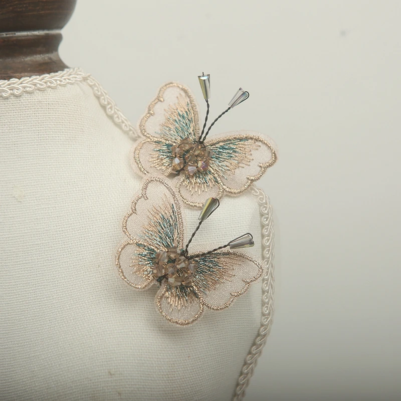 Декоративная заколка для волос ручной работы с бисером и бабочкой, Свадебный корсаж на плечо, Цветочный вырез, аппликация