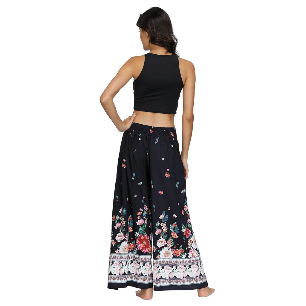 Boho женские свободные повседневные штаны для йоги, летние спортивные брюки, мешковатый комбинезон, штаны с эластичной резинкой на талии, полная длина, спортивная одежда