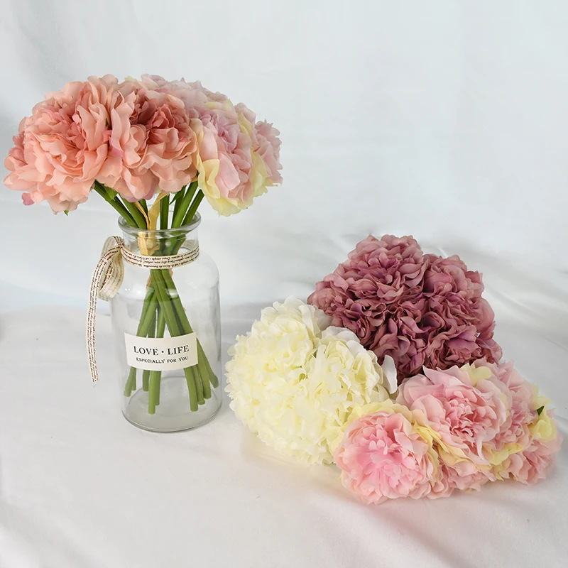 Quantity:a bouquet of 5 hydrangea peony headsMaterial:silk flower+Plastic flower rodColor:as the picture show