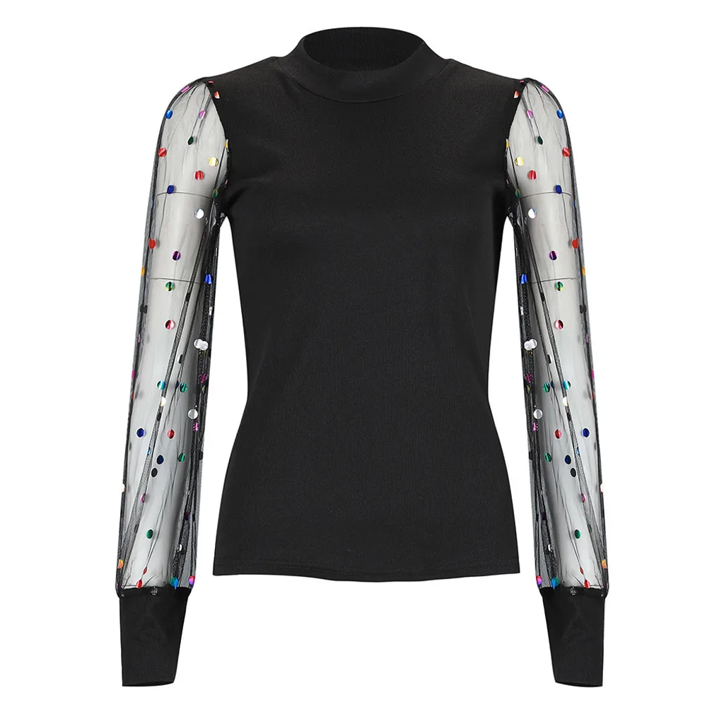 Особенности: длинный рукав Рукава, С сеткой и блесткамиПерспектива,Кружевная Сетка, пышные рукава, водолазка, стильный и модный дизайн,Весна,На осень И Зима Повседневные топы.