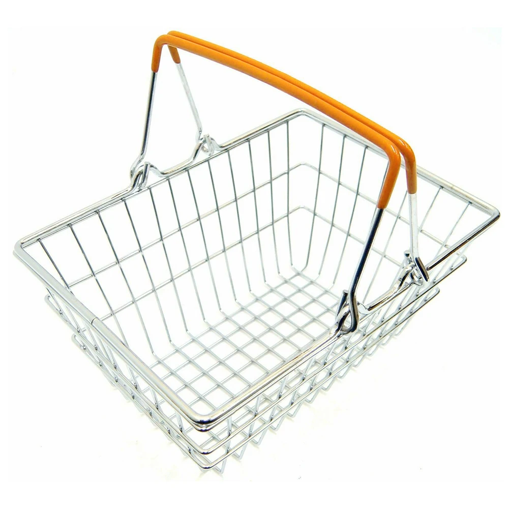 Детская миниатюрная металлическая корзина для покупок в супермаркете, игрушка для ролевых игр, домашний декор 14,5 см x 10,5 см x 6 см