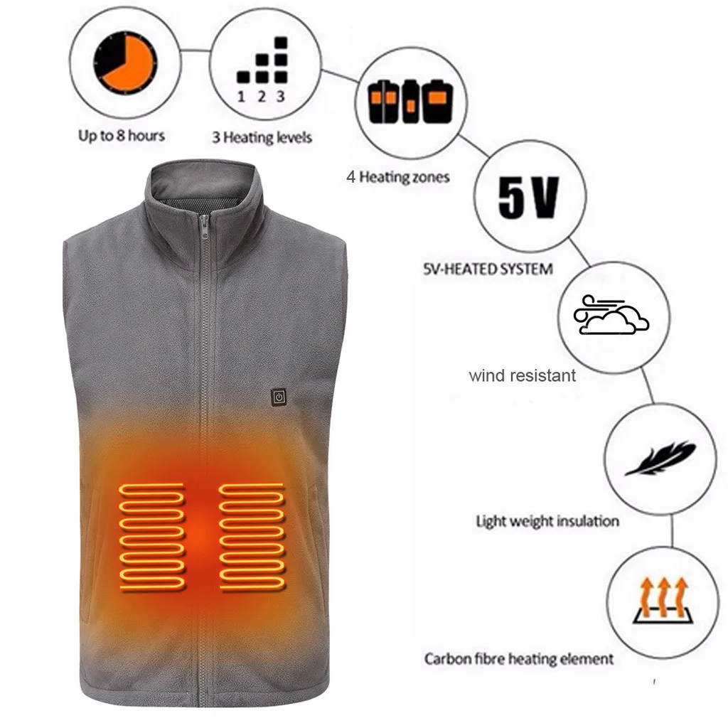 2019 новый зимний жилет с электрическим подогревом Пальто из ткани с подогревом для мужчин и женщин, теплое Спортивное флисовое зимнее пальто с USB для походов и кемпинга