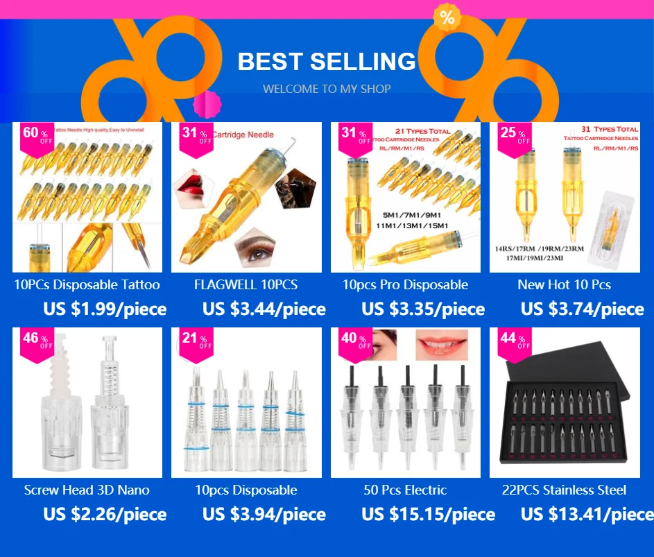 Характеристика: 1. Одноразовые конструкции, здоровье и гигиена, гигиенические для использования. 2. Наконечник иглы из нержавеющей стали, износостойкий, небольшая вибрация, хорошая прочность. 3. Доступны различные модели, 1pin, 3R, 5R, подходят для вкладышей и шейдеров. 4. Подходит для бровей, подводки для глаз, татуажа губ и так далее. 5. Включая 3 шт. посылка, удовлетворяя ваши различные потребности. Спецификация: Состояние на 100% абсолютно новый Тип изделия: игла для татуировки Материал: пластик, нержавеющая сталь Дополнительная Модель: 1pin, 3R, 5R Посылка: 10 x иглы татуировки