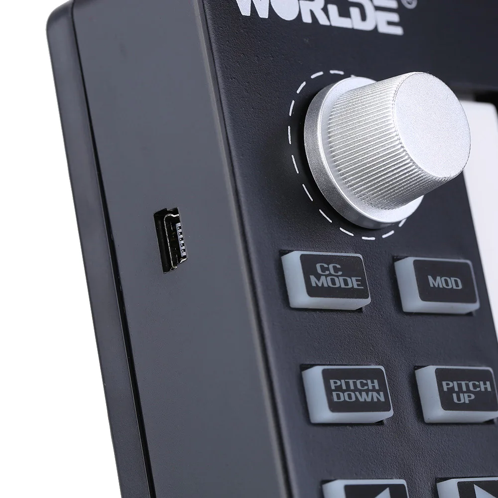 6 кнопок управления: правка, мод, шаг вниз/шаг вверх, Октава вниз/октава вверх.