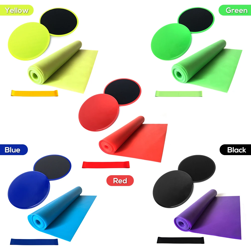 Комплект оборудования для йоги включает в себя ползунки с сердечником дисков 2 шт., ленту сопротивления петли, растягивающийся ремень, хорошо подходит для тренировки брюшного сердечника, тренажерного зала, йоги, пилатеса, восстановления и растягивания упражнений.