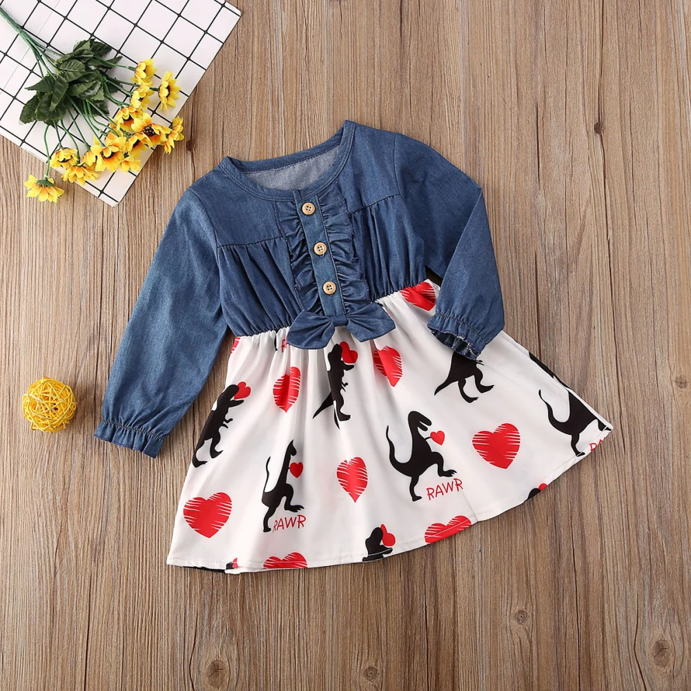 Основной цвет: как на картинке Новинка в моде Материал: смесь хлопка и джинсовая тканьОбратите внимание: если ваш ребенок полноват, мы рекомендуем выбрать больший размер, спасибо. Просим перепроверять размеры детей, рост и полноту по размерной таблице перед покупкой/подачей заявки. Спасибо за понимание. Посылка включает в себя:1x платье Размеры таблицей: