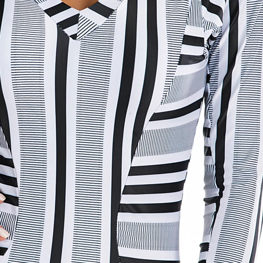 Women Fashion V-neck Stripe Print Diving Surfing Suit Set Beach Suit