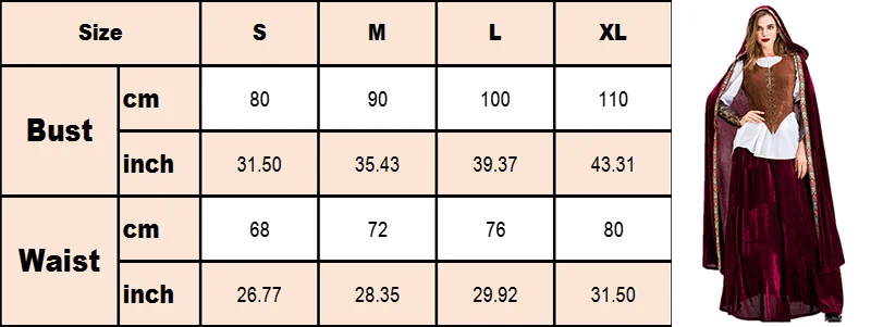 -Посылка в комплект темно-Красного цвета включает: плащ + рубашку + жилет + юбку + подтяжки. -Посылка красного цвета включает в себя: плащ + платье. -Цвет может немного отличаться из-за калибровки цвета каждого индивидуального монитора. -Может быть зазор 1-3 см, так как измерения выполнены вручную, стандарты размеров отличаются от разных производителей, измерьте ваше тело перед покупкой.
