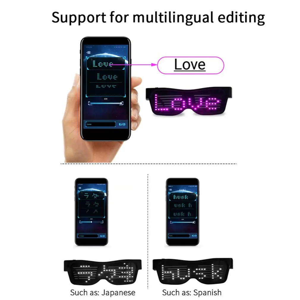 1. Mobile phone connection BT uses app control glasses to use. Can be DIY a variety of patterns, suitable for stage performances, DJ night, Judi and many other places.