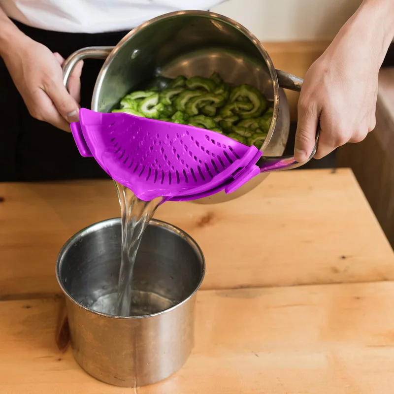 -Клип-на дизайн-крепкий зажим будет держать его безопасно прикреплен во время использования. Эта конструкция позволяет захватывать кастрюлю или сковороду обеими руками при напряжении, устраняя разливы.