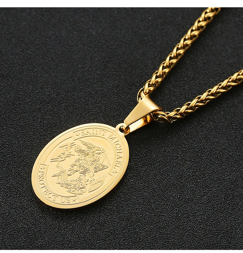 Ожерелье с подвеской Saint Michael, колье из нержавеющей стали с крыльями ангела, колье с дьяволом, индивидуальное ожерелье для мужчин, ювелирное изделие в стиле «религия»