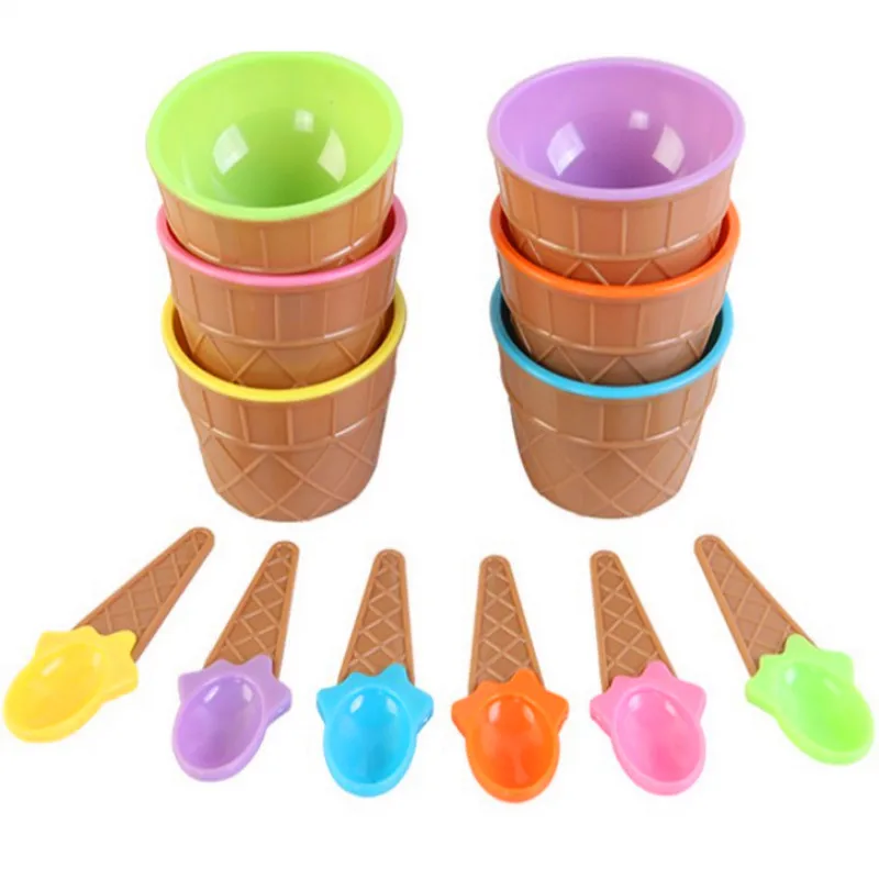 Прекрасный набор мороженого в пластиковых мисках и ложках!