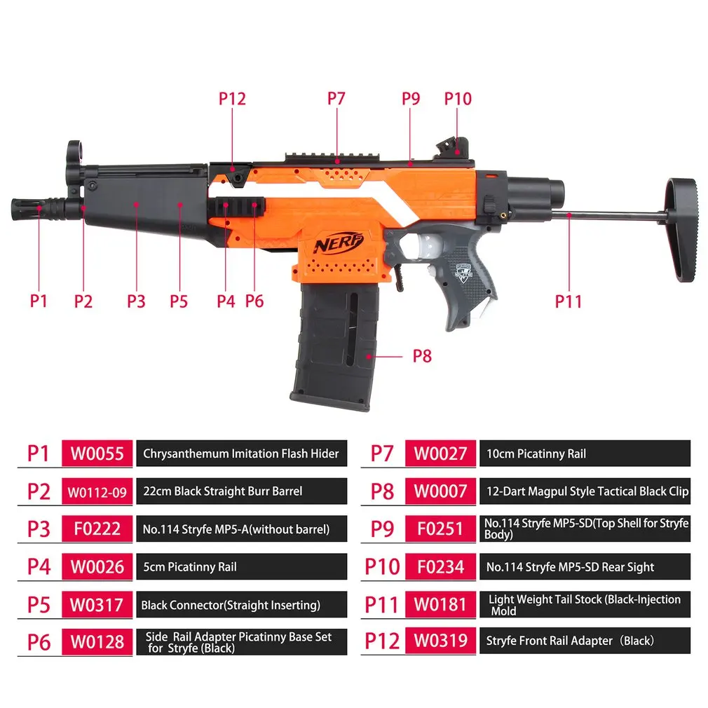 Этот набор предназначен для улучшения внешнего вида на основе оригинального Nerf N-Strike Elite Stryfe Blaster, что делает Nerf Stryfe более похожим на внешний вид АК штурмовой винтовки; тонкое мастерство и уникальное моделирование делают Nerf Stryfe более крутым и особенным.