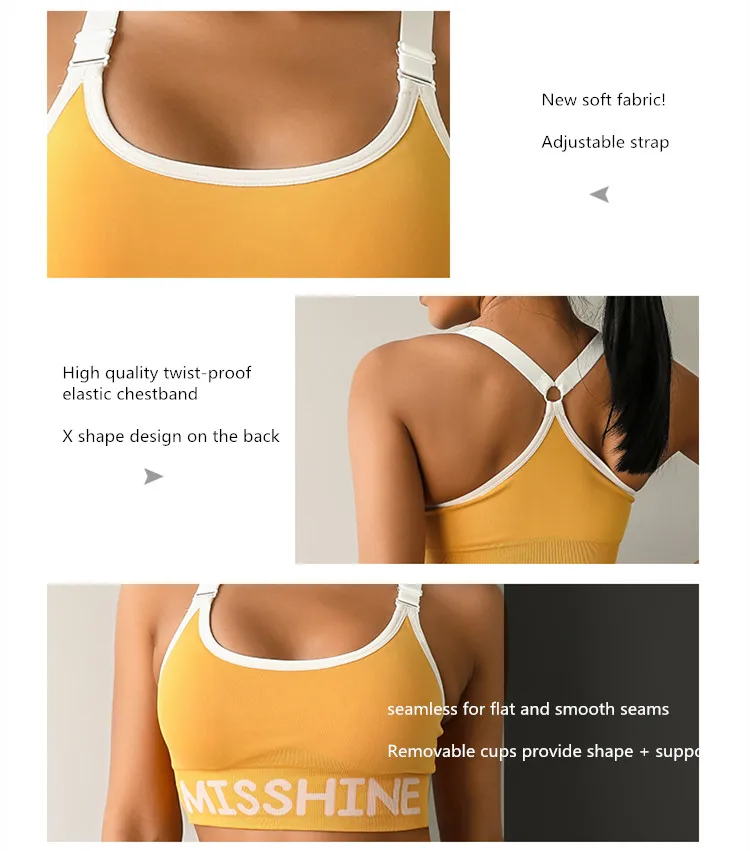 Новая мягкая ткань! С регулируемым ремешком Высококачественный устойчивый к закручиванию эластичный ремешок на грудь Дизайн х-образной формы сзади Бесшовные для плоских и гладких швов Съемные чашки обеспечивают форму и опору Защита от катышков и влаги, впитывающая Средний Поддержка