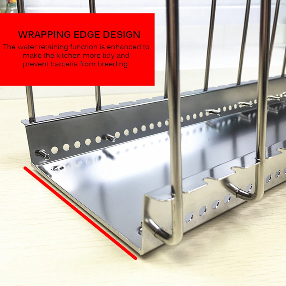Стойка имеет форму буквы м, чтобы надежно удерживать крышку сковороды и другие предметы. Под сливным лотком также есть четыре гладких ножки, которые надежно поддерживают весь стеллаж.