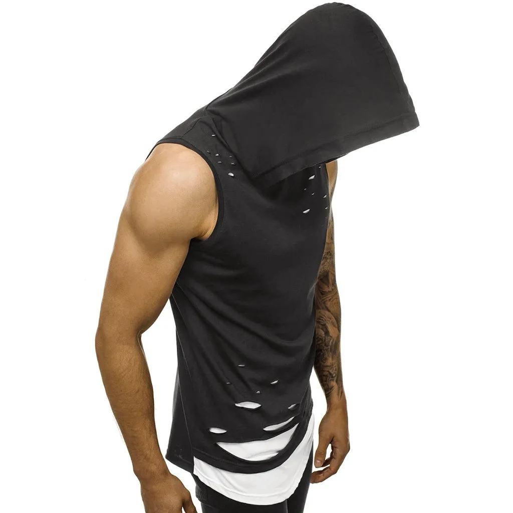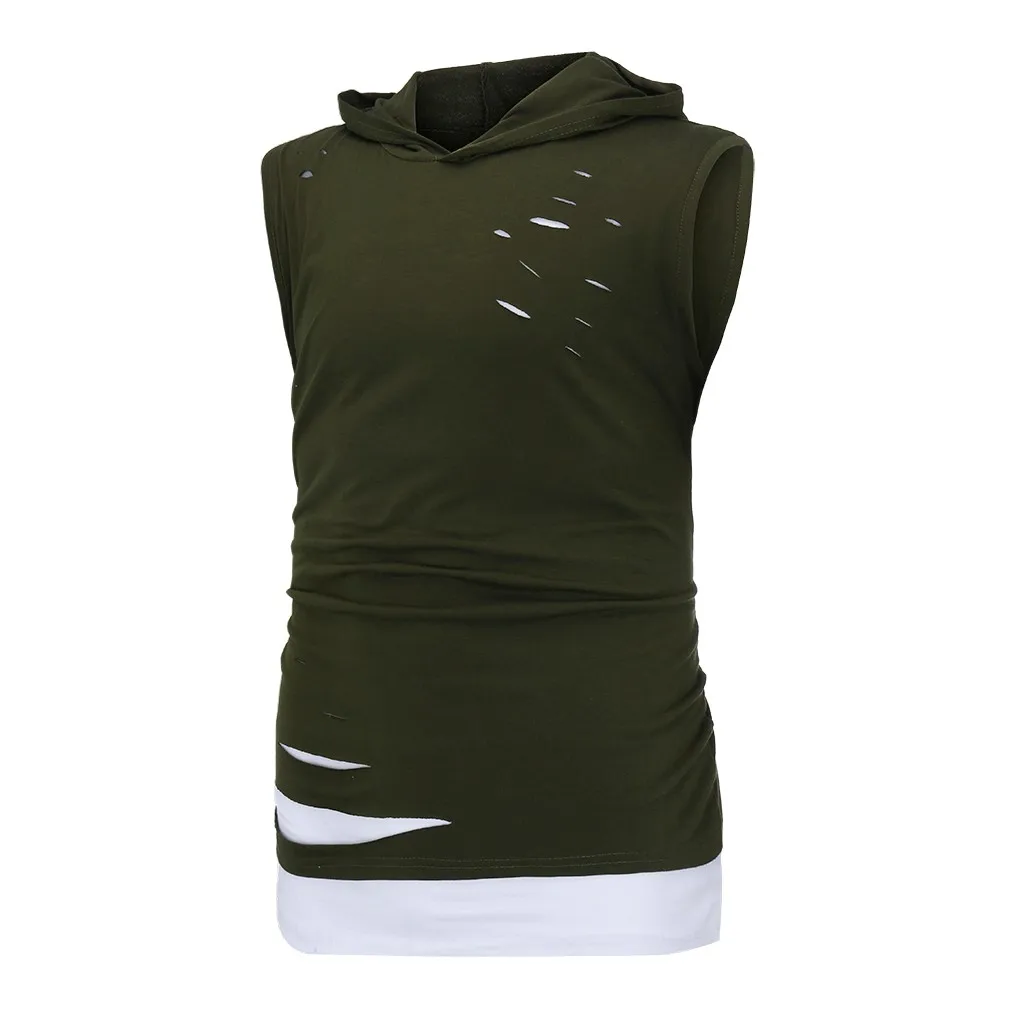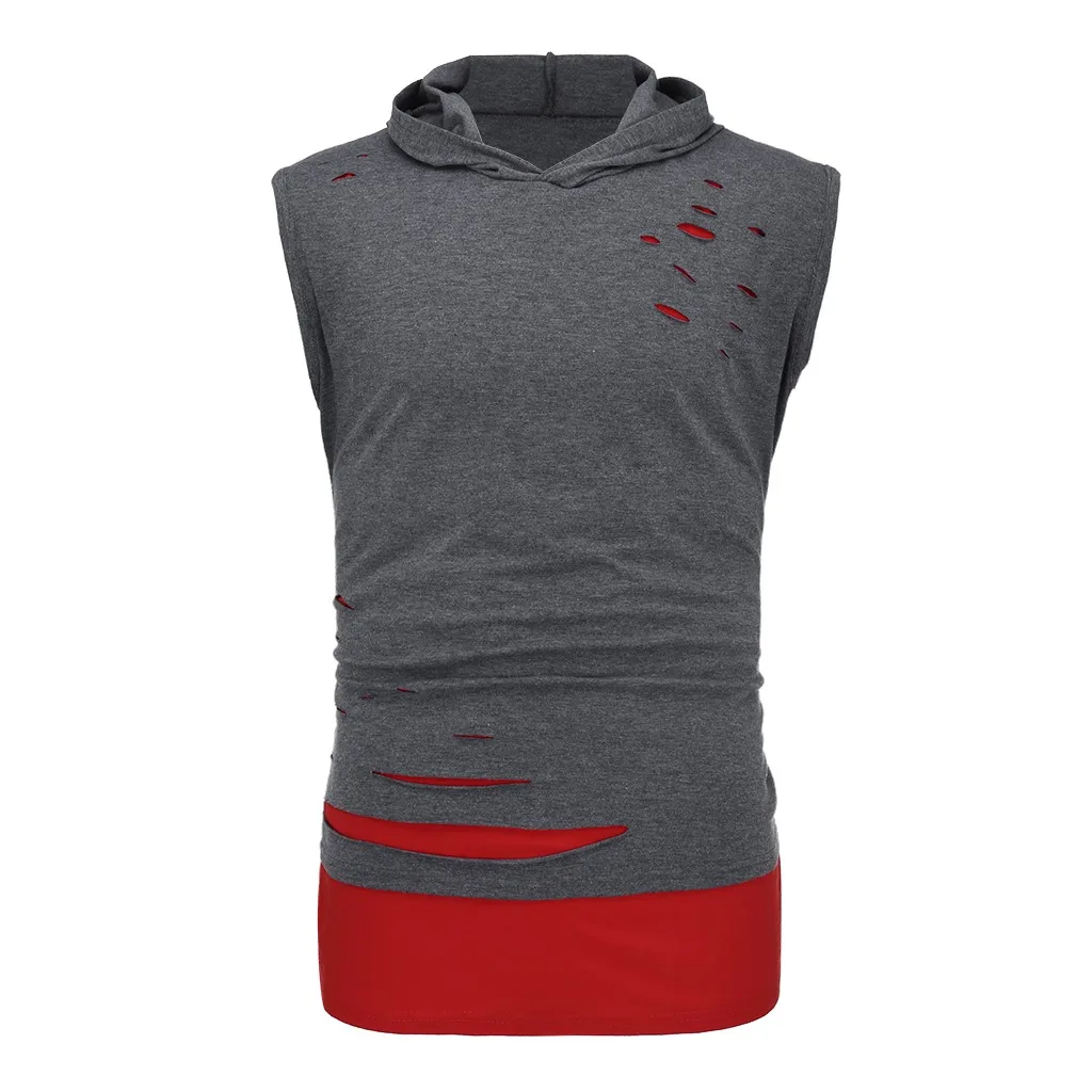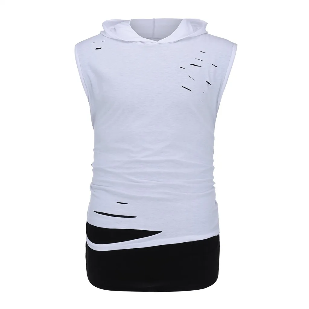 Мужская жилетка с дырками, комбинированная Футболка с имитацией двух лоскутов, контрастная Толстовка без рукавов