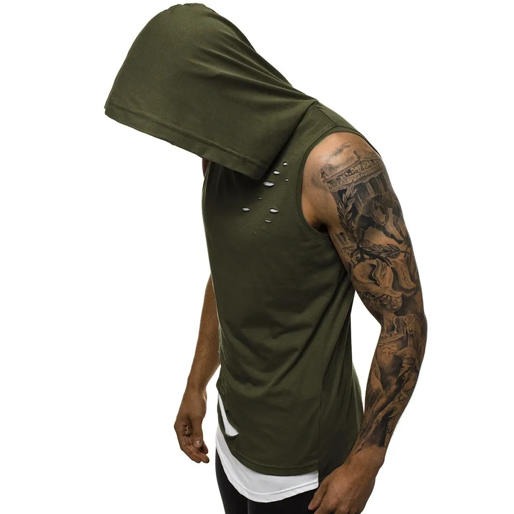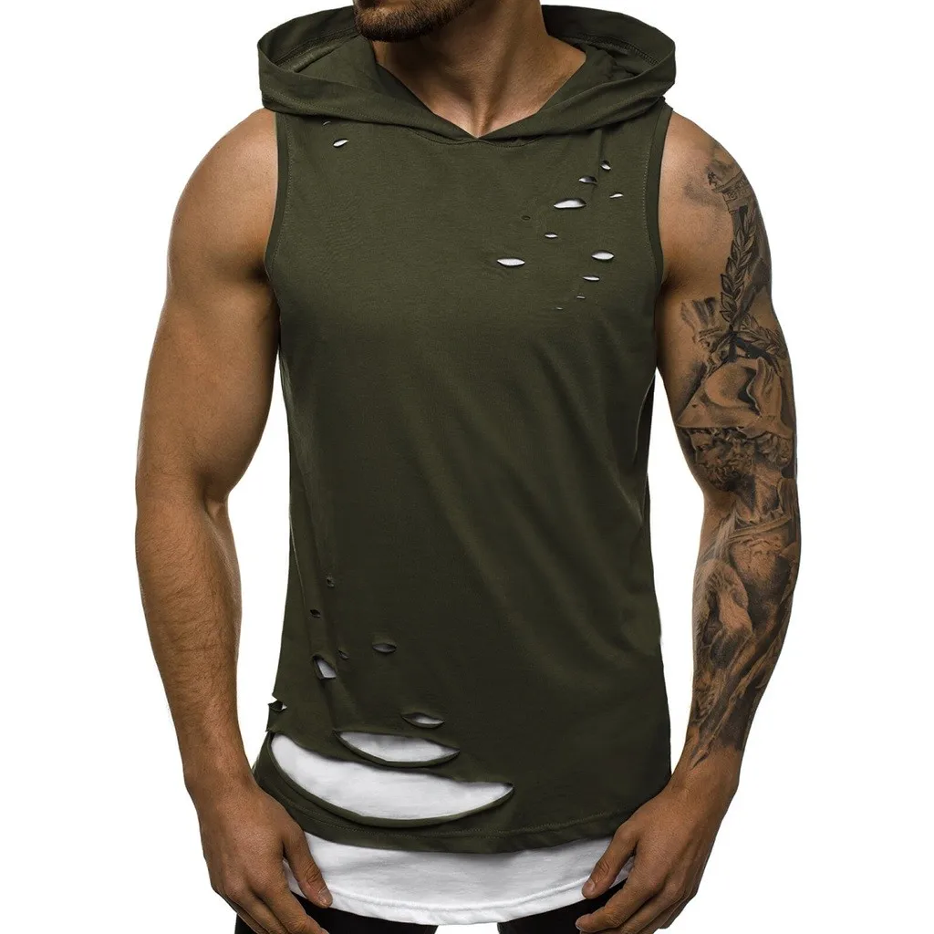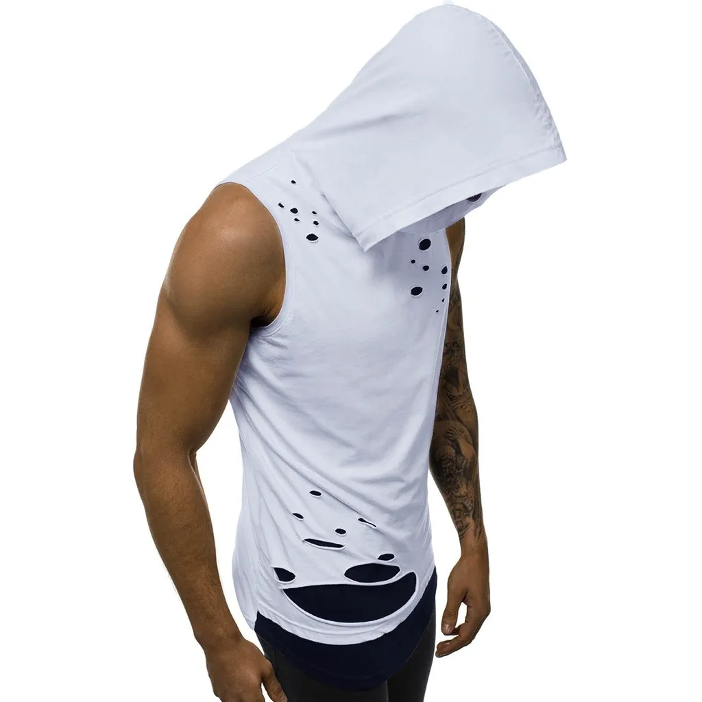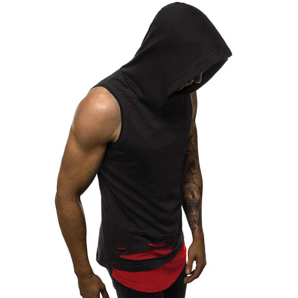 Мужская жилетка с дырками, комбинированная Футболка с имитацией двух лоскутов, контрастная Толстовка без рукавов