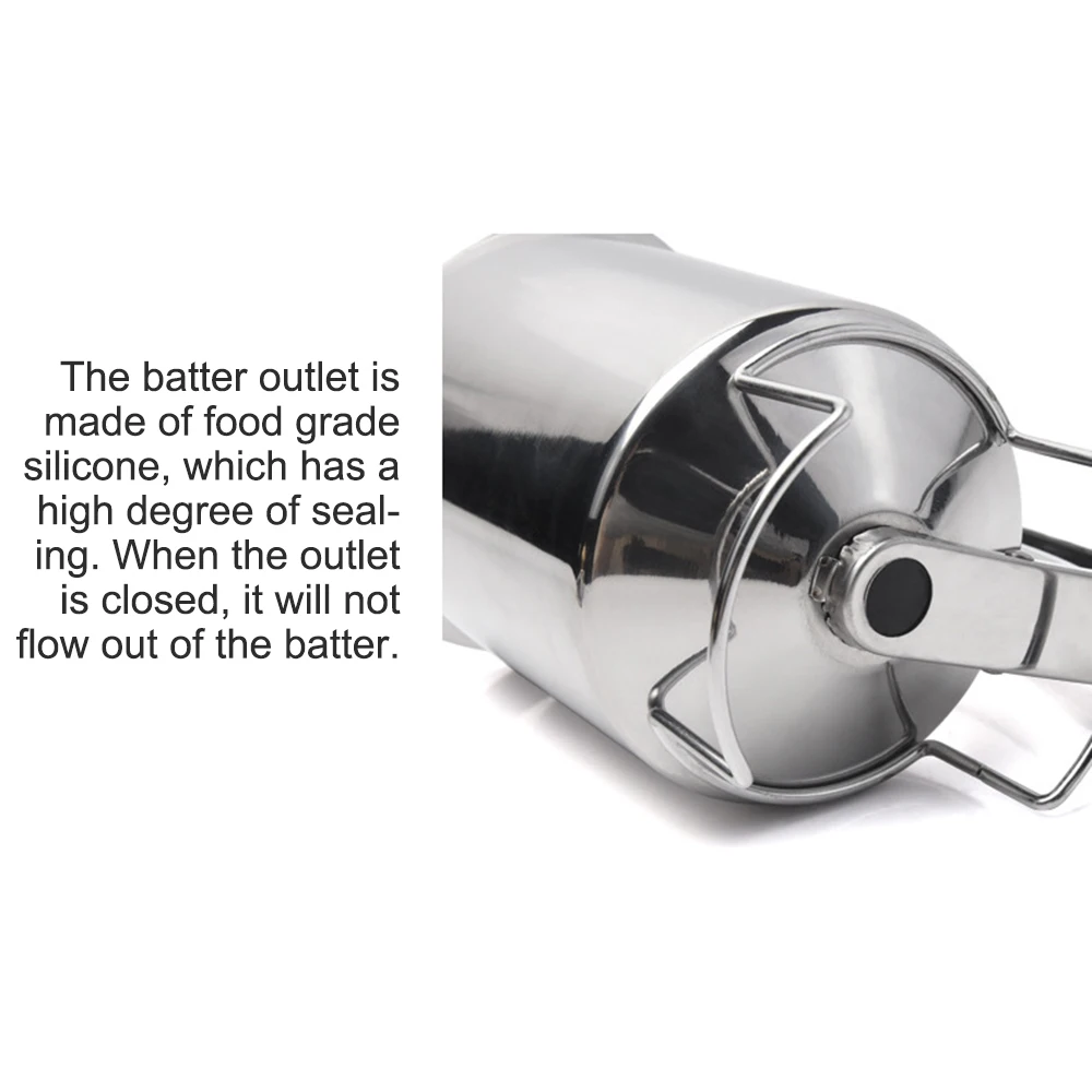 The nozzle of the pancake batter funnel is sealed by food-grade silicone structure, which works perfect in stopping the batter flowing when the nozzle is closed. The pancake batter funnel is sensitive enough to control the batter.