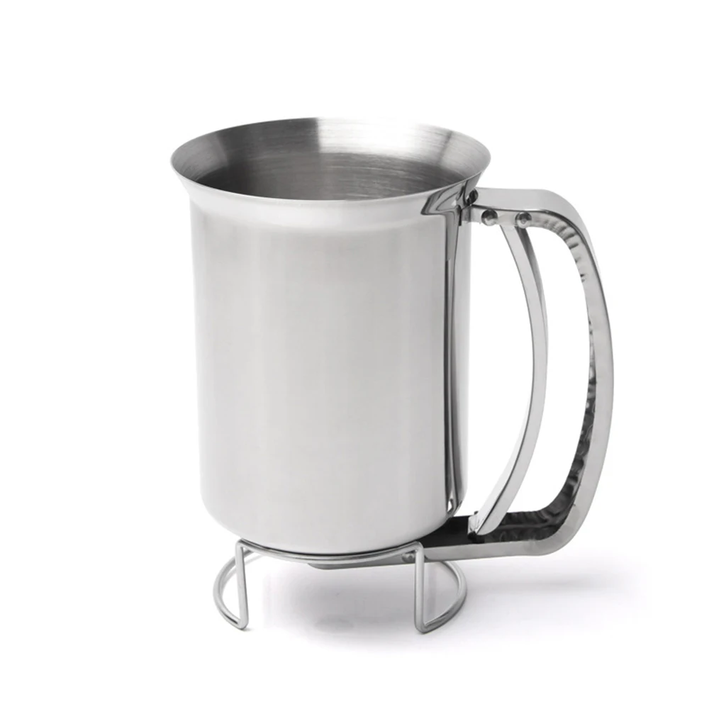 The bottom bracket design can stably support the full pancake batter funnel on flat surface when it is tired of you to hold the metal pancake batter funnel for long time.