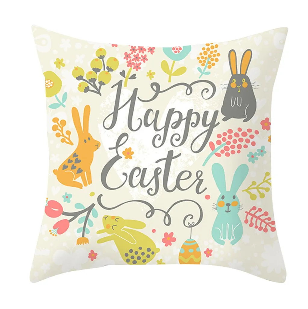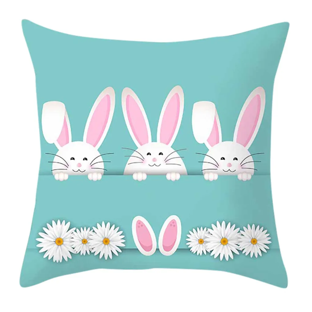 Easter Rabbit Print Pillow Case Polyester Sofa Car Cushion Cover Home Decor