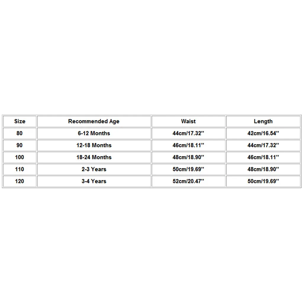 | Размер | Рекомендуемый возраст | Талия | Длина |
