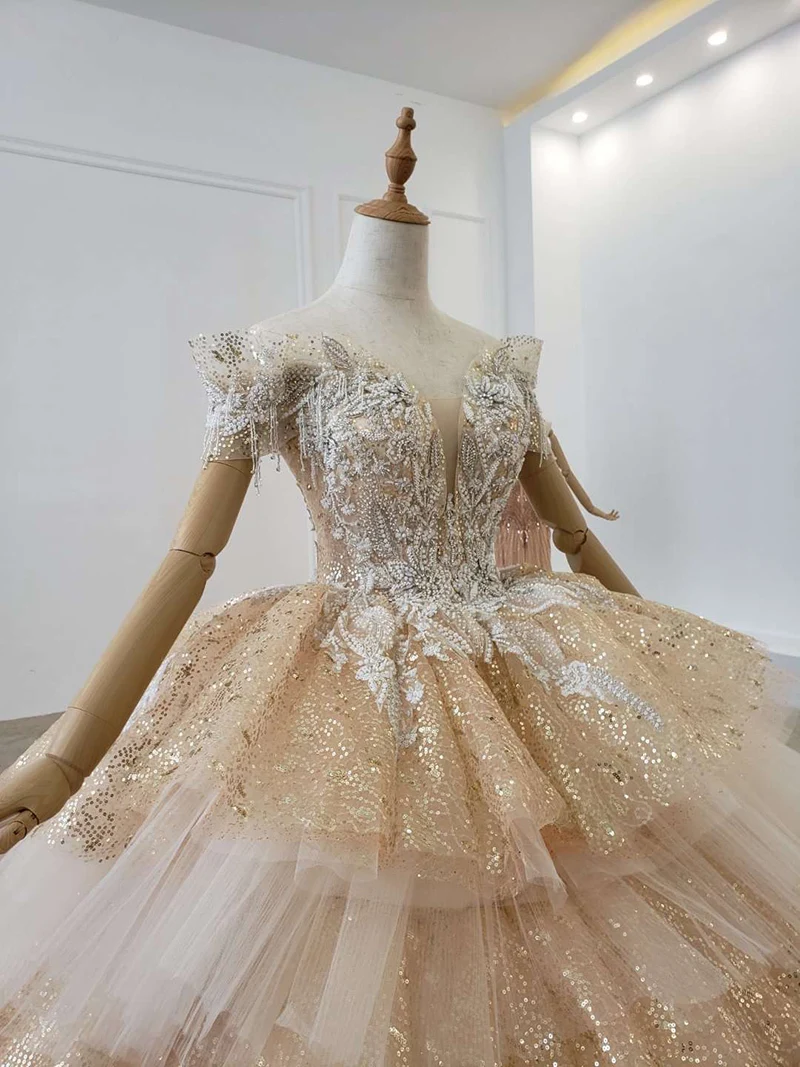 Длинное вечернее платье с рукавом до локтя из тюля бусинами | Свадьбы и торжества
