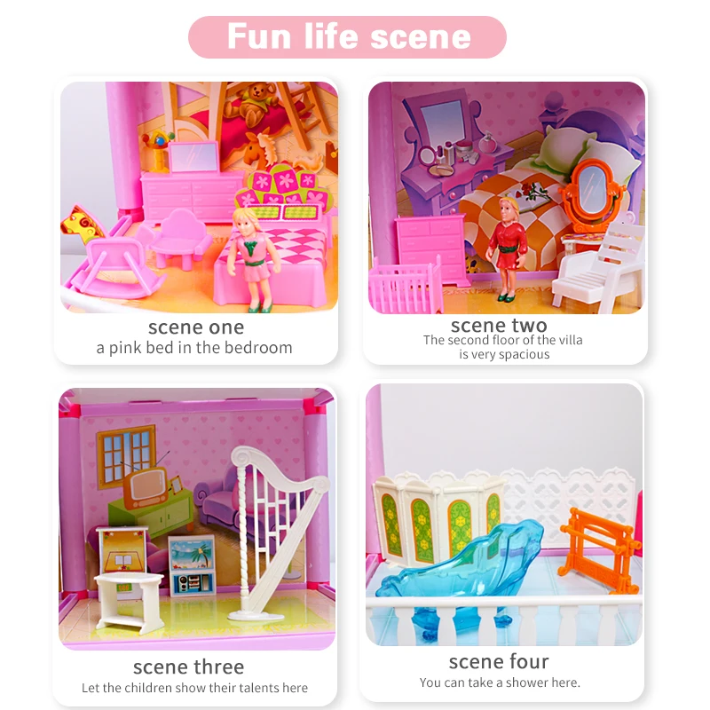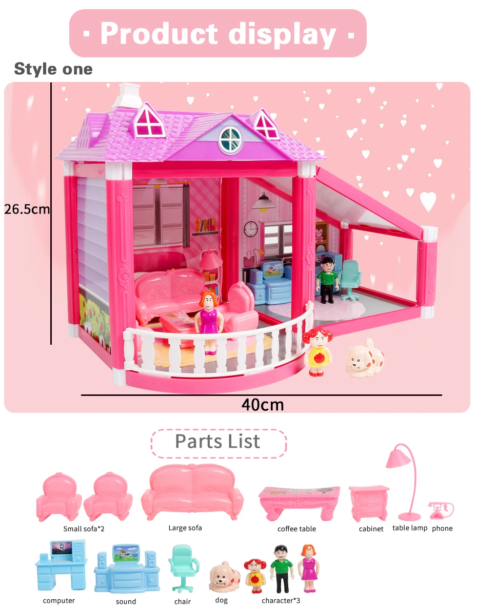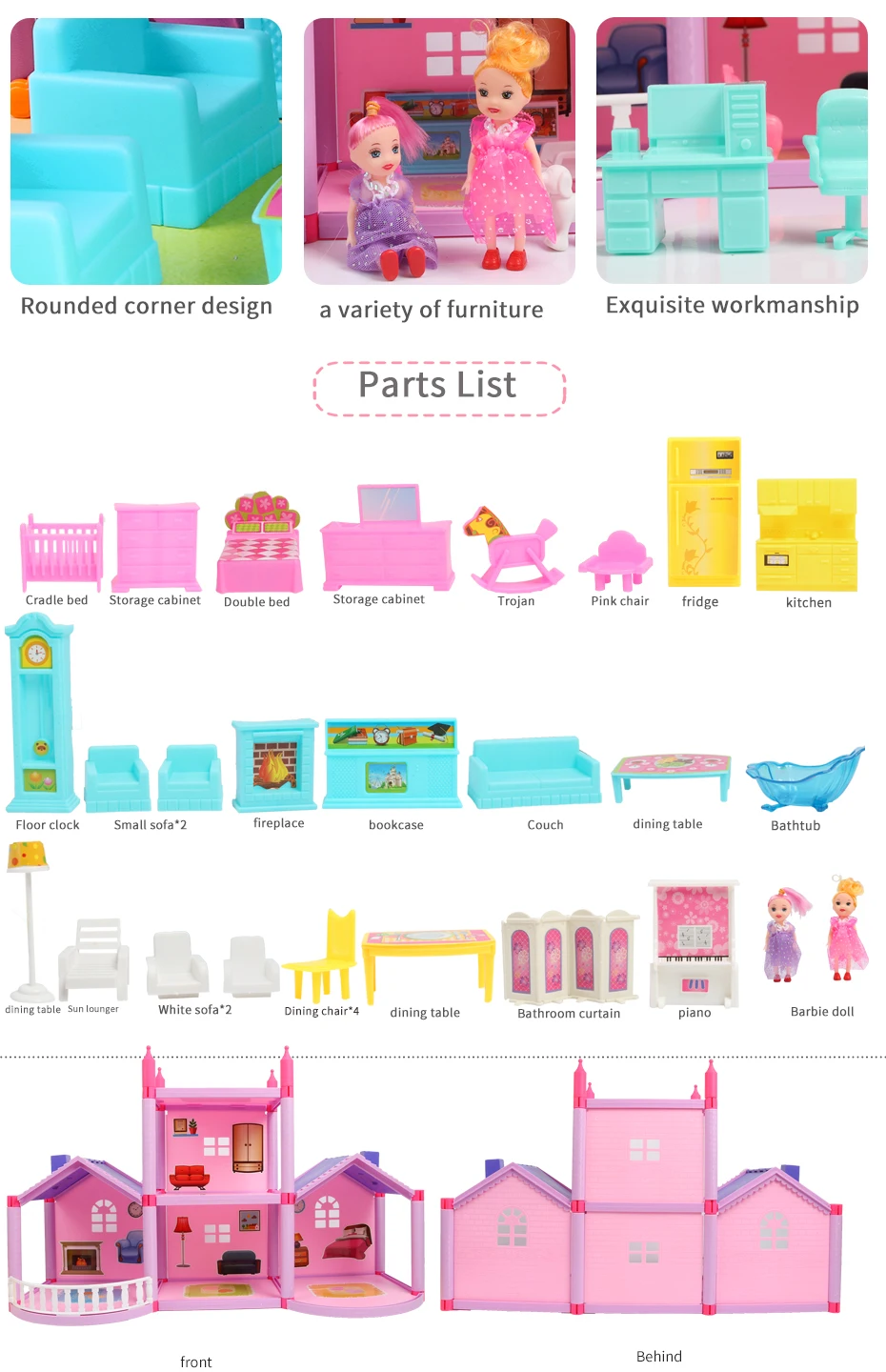 1. Материал: АБС-пластик 2. Хороший игровой мат для детей 3. Вы получите кукольный домик со всей мебелью, такой же, как на фотографиях. 4. Цвет: каждый стиль с 2 вида цветов, мы отправим случайным образом. Пожалуйста, обратите внимание. 5. реальный цвет товара может немного отличаться от изображения на веб-сайте, вызванного многими факторами, такими как яркость вашего монитора и яркость света 6. товар не включает оригинальную упаковочную коробку, мы отправим его в полиэтиленовом пакете, чтобы сэкономить на стоимости доставки. 7. Из-за некоторых стильных инструкций печать на оригинальной цветной коробке, если вы получите его без инструкции, пожалуйста, свяжитесь с нами, чтобы получить инструкцию.