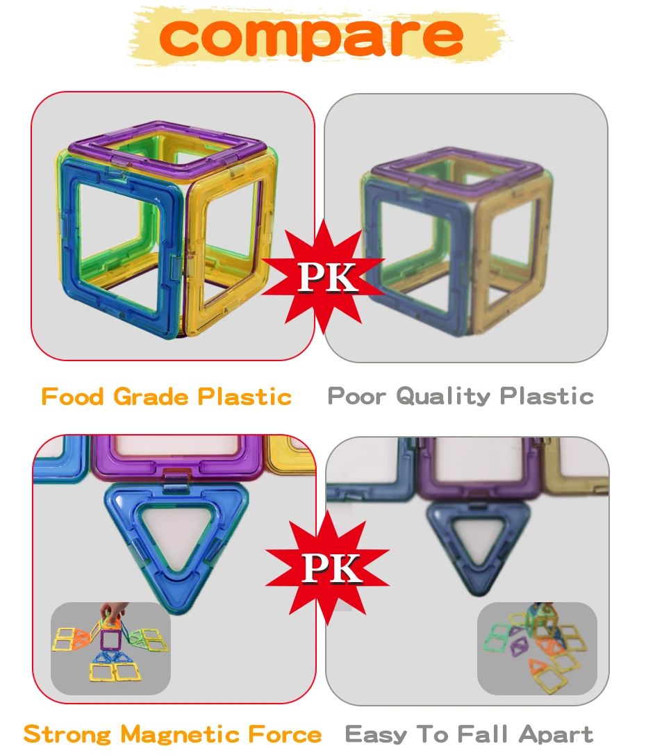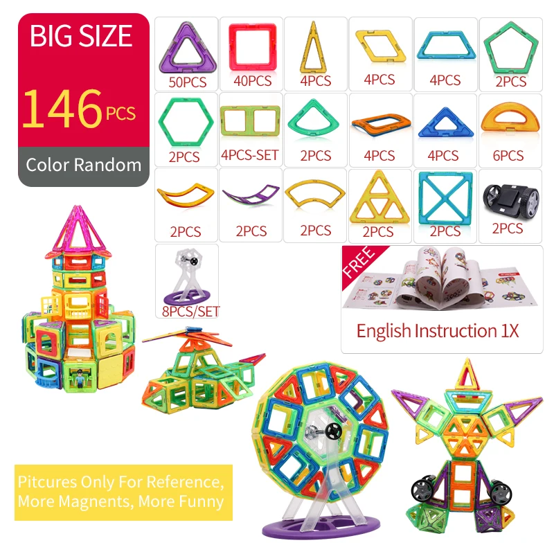 Материал: пластик + магнит Размер: большой размер (вы можете проверить размер из описания) упаковка: полиэтиленовый пакет (с инструкцией на английском языке) Цвет: будет отправлен наугад, мы сделаем все возможное, чтобы отправить вам Красочные Магнитные блоки. Безопасность: Изготовлен из высококачественного абсолютно нового абс + магнитного, нетоксичного, без запаха, с сертификатом EN71, 100% безопасный для детей
