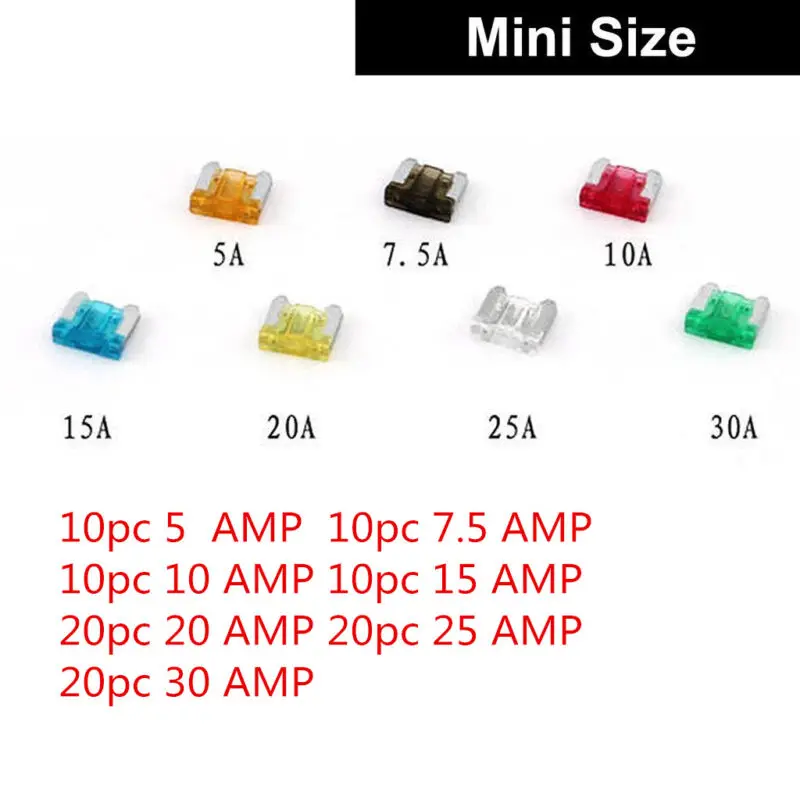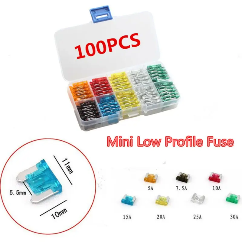 * 100 шт Ассорти автомобиль мини низкопрофильный предохранитель коробка комплект 5 7,5 10 15 20 25 30Amp наборы